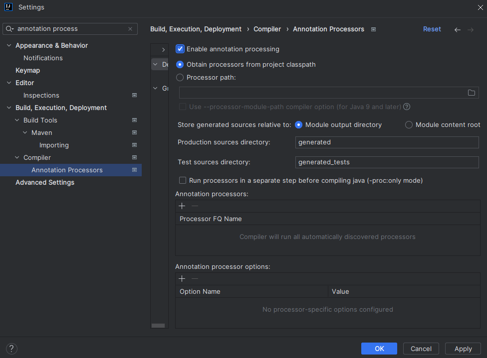 3. Annotation Processors 설정 켜야지만, 인텔리제이에서 사용 가능